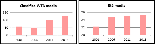 Analizziamo come sempre i dati dei primi 15 giocatori in classifica nel 2001, 2006, 2011 e 2016.